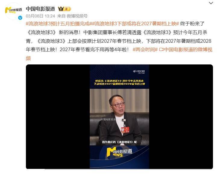 诚然2026年的春节档刚过,但我也曾运行期待2027年的春节档了。 因为早在两年前,就有一部电影官宣定档2027春节档-- 《流浪地球3》。 只不外除了定档音问以外,影片耐久莫得官宣杀青,关于一部后期制作需要大齐时刻的影片来说,的确让东说念主有点牵挂,来岁的春节档还能不成看到了? 好在中影集团董事长,实时给众人吃下了一颗宽解丸。 从客岁的4月份开拍,到本年的5月份运行进行后期,也就意味着在5月份演员们就要精采杀青了。 而上半部,依然会在来岁的春节档上映。 就连下半部也有准确的音问,不是2027