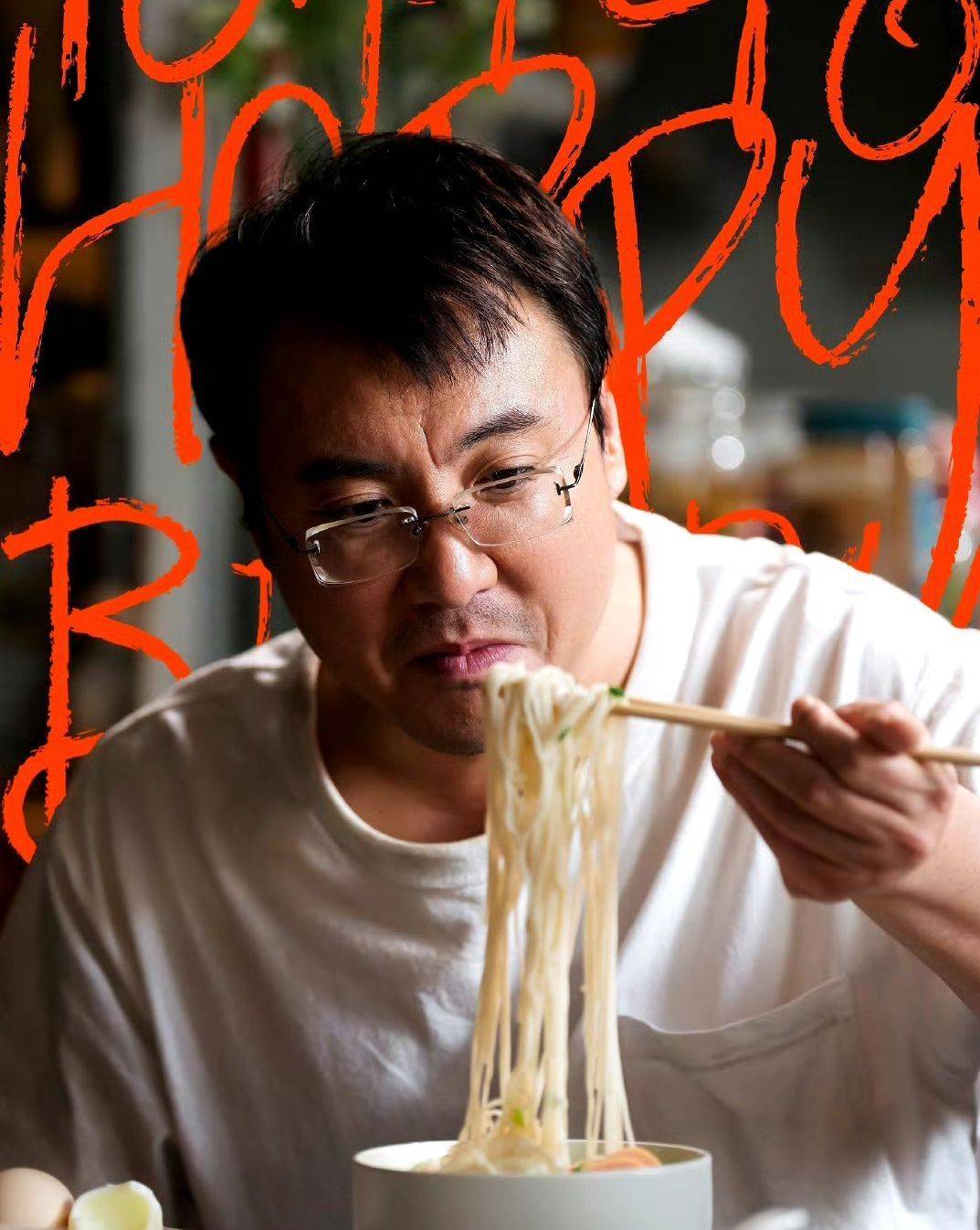 马丽一稔红毛衣,系着围裙作念饭,沈腾一稔白T恤,夹着一筷子面条。