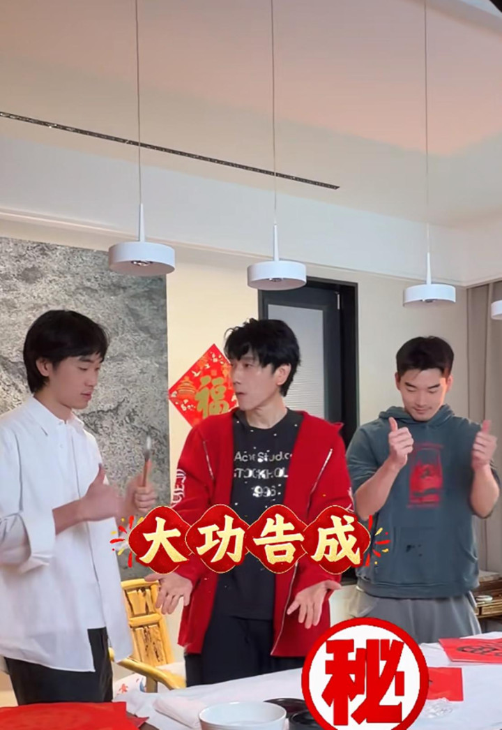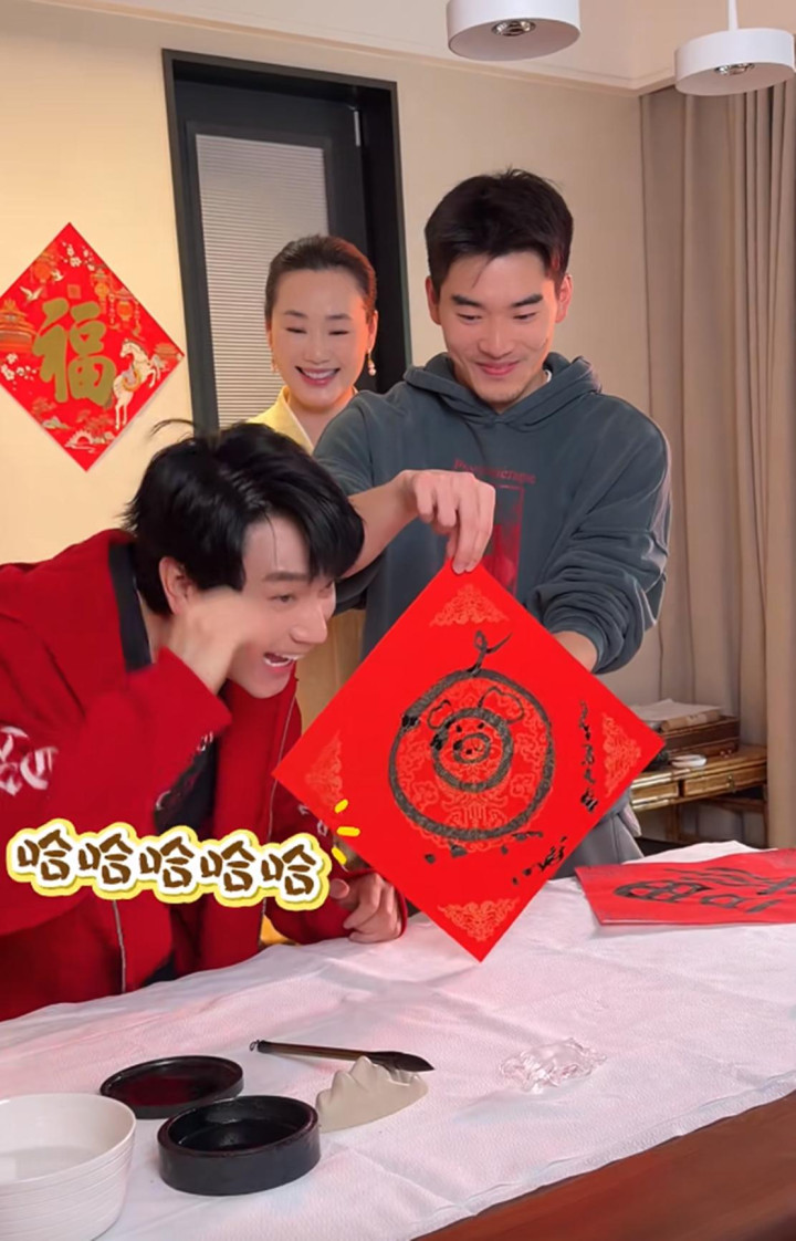 本性活跃的林依轮不错说是家里的脑怒担当,这不,在写福字时,写完的他像个孩子一般看着两个犬子要夸奖。两个犬子亦然为他竖起大拇指给足情怀价值,看着可比爸爸练习施展多了,为此,有网友玩笑称他们一家四口像是一个母亲带着三个孩子。
