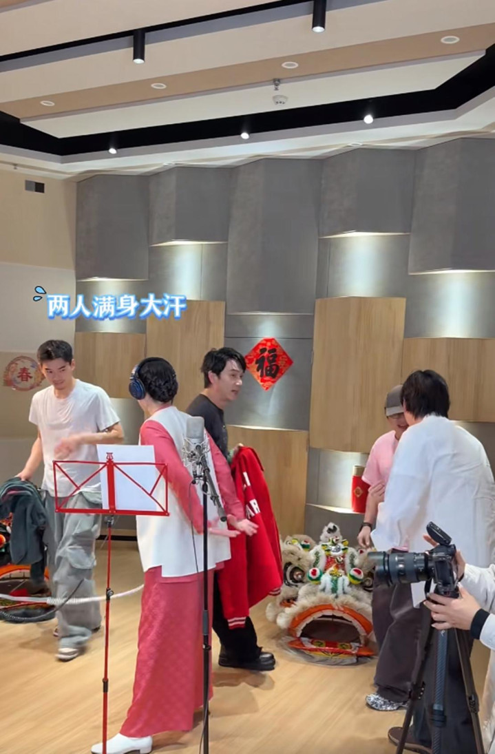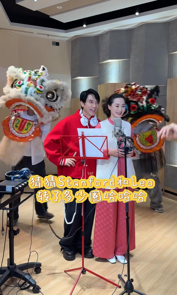 写完对联,吃了饺子的林依轮一家,他们运转录制新年歌曲,林依轮和太太西华负责唱歌,俩犬子则充任配景板在背面舞狮,一家四口在一齐的家庭氛围温馨又愉快。