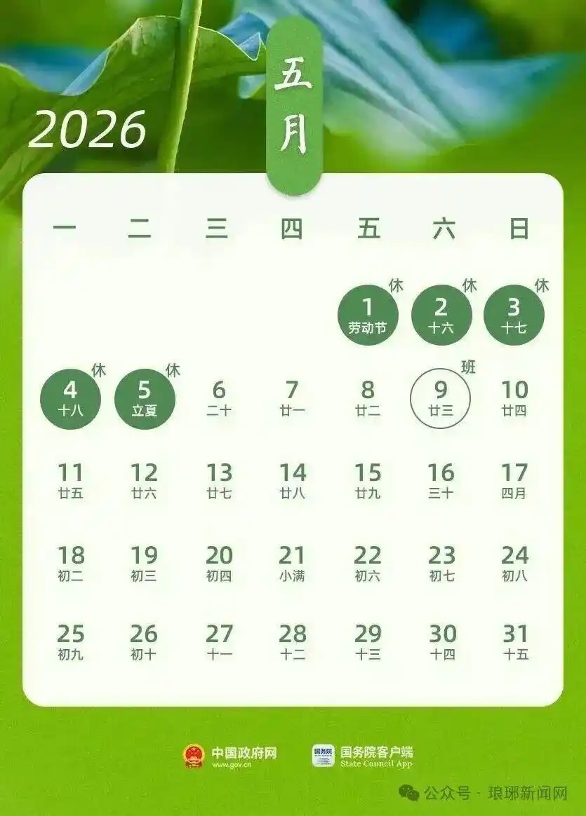 三天的小长假行将抑止假期余额已不及打工格局行将重启来日就又要上班啦可是只需再上18天班就又能迎来长假了依据国务院办公厅《对于2026年部分节沐日安排的奉告》:做事节,5月1日(周五)至5日(周二)休假调休,共5天,5月9日(周六)上班。 联想自驾出游的伙伴防备啦做事节高速公路免费通行凭证国务院发布的《对于批转交通运载部等部门首要节沐日免收微型客车通行费实际有谋略的奉告》(国发〔2012〕37号)开云体育,收费公路免费通行技术为春节、直爽节、做事节、国庆节四个国度法定节沐日。免费车辆包括哪些?7
